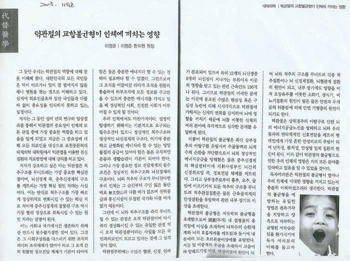 턱관절의 교합불균형이 인체에 끼치는 영향