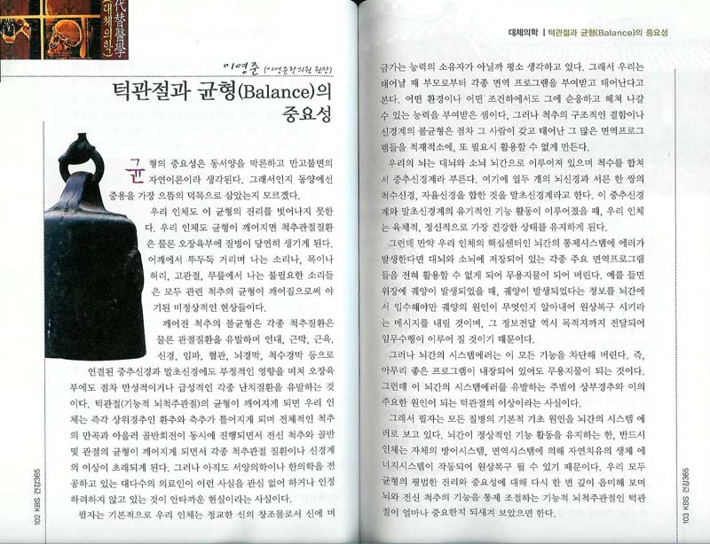 그래서 필자는 모든 질병의 기본적 기초 원인을 뇌간의 시스템 에러로 보고 있다. 뇌간이 정상적인 기능 활동을 유지하는 한, 반드시 인체는 자체의 방어시스템, 면역시스템에 의해 자연치유의 생체 에너지시스템이 작동되어 원상복구 될 수 있기 때문이다. 우리 모두 균형의 평범한 진리와 중요성에 대해 다시 한 번 깊이 음미해 보며 뇌와 전신 척추의 기능을 통제 조절하는 기능적 뇌척주관절인 턱관절이 얼마나 중요한지 되새겨 보았으면 한다.